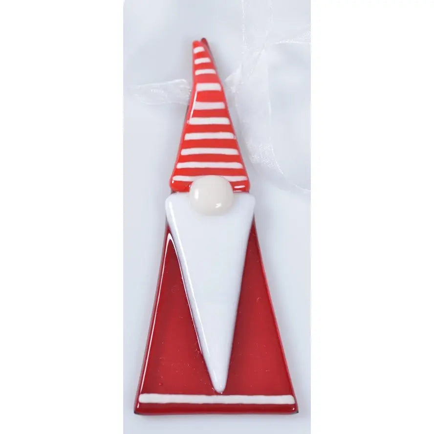 White Stripes On Red Glass Gonk Father Christmas Tree Decoration