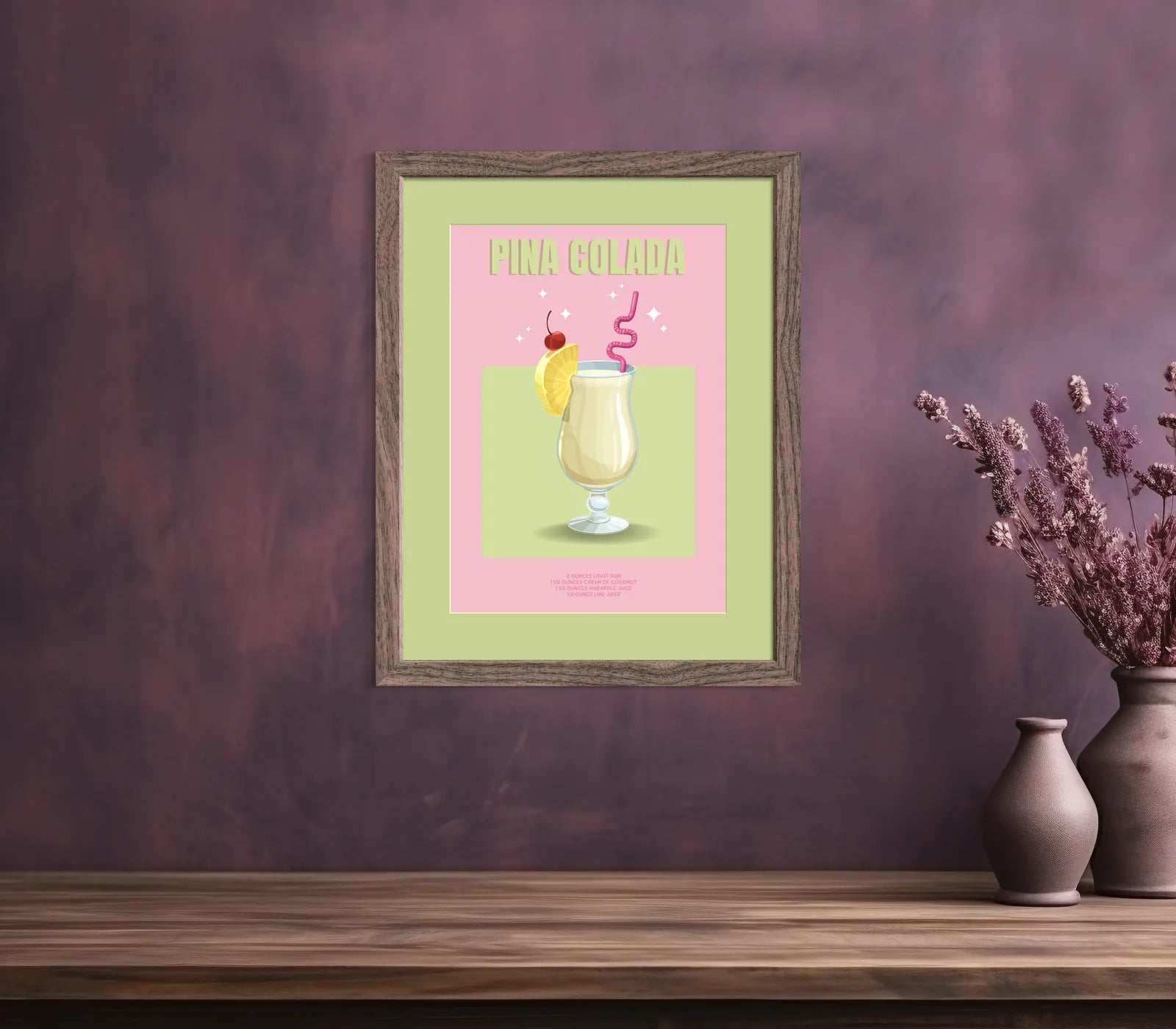 This retro-inspired cocktail art collection features vibrant prints of classic drinks, set against vintage-hued backgrounds with playful shadows. From mojitos and margaritas to whisky sours, each design highlights elegant details, bright garnishes, and ingredient lists, adding charm to any kitchen or bar.