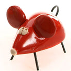 Glossy Red Handmade Ceramic Mouse Figure With Playful Style