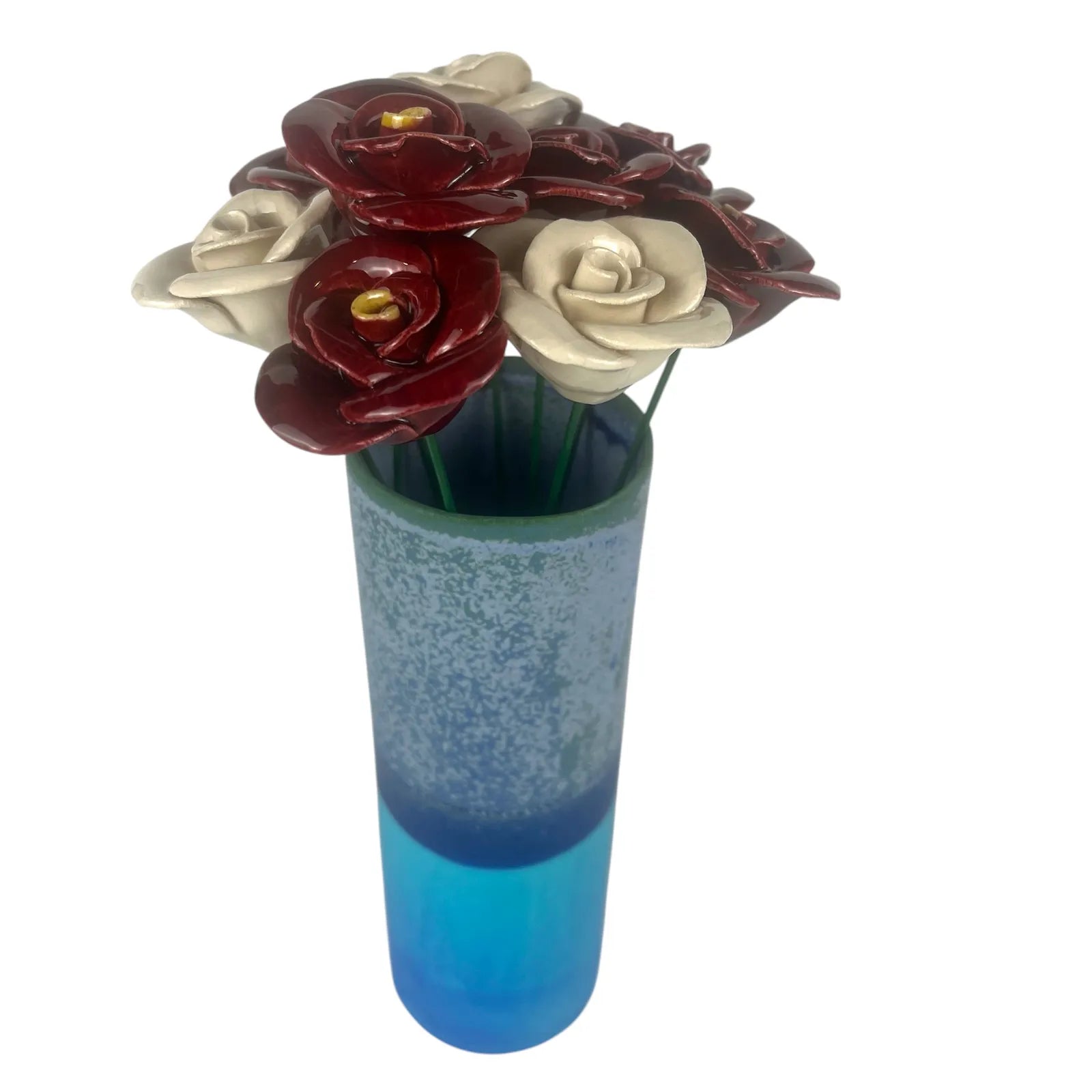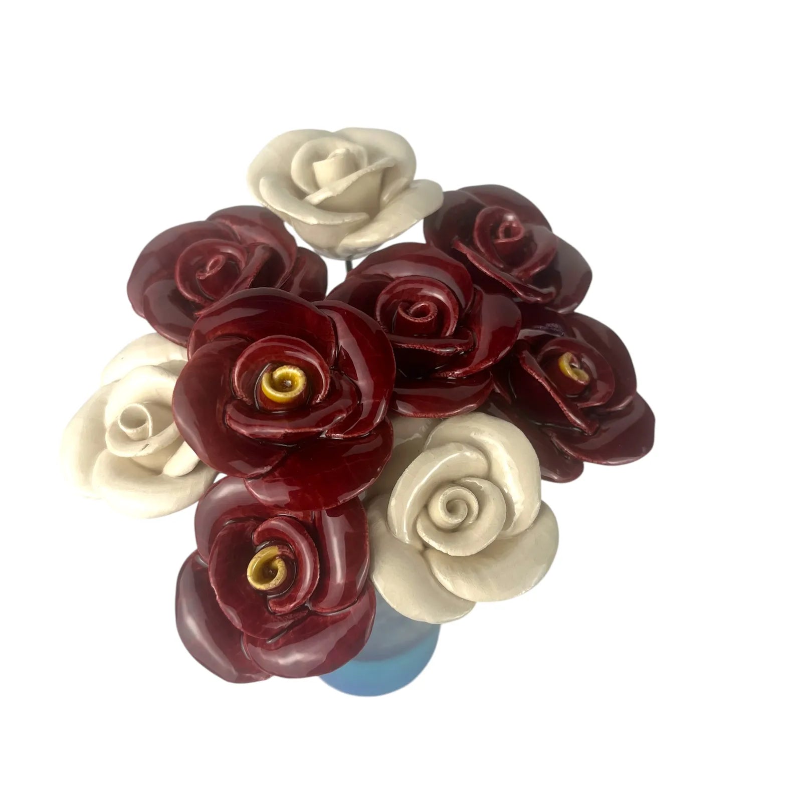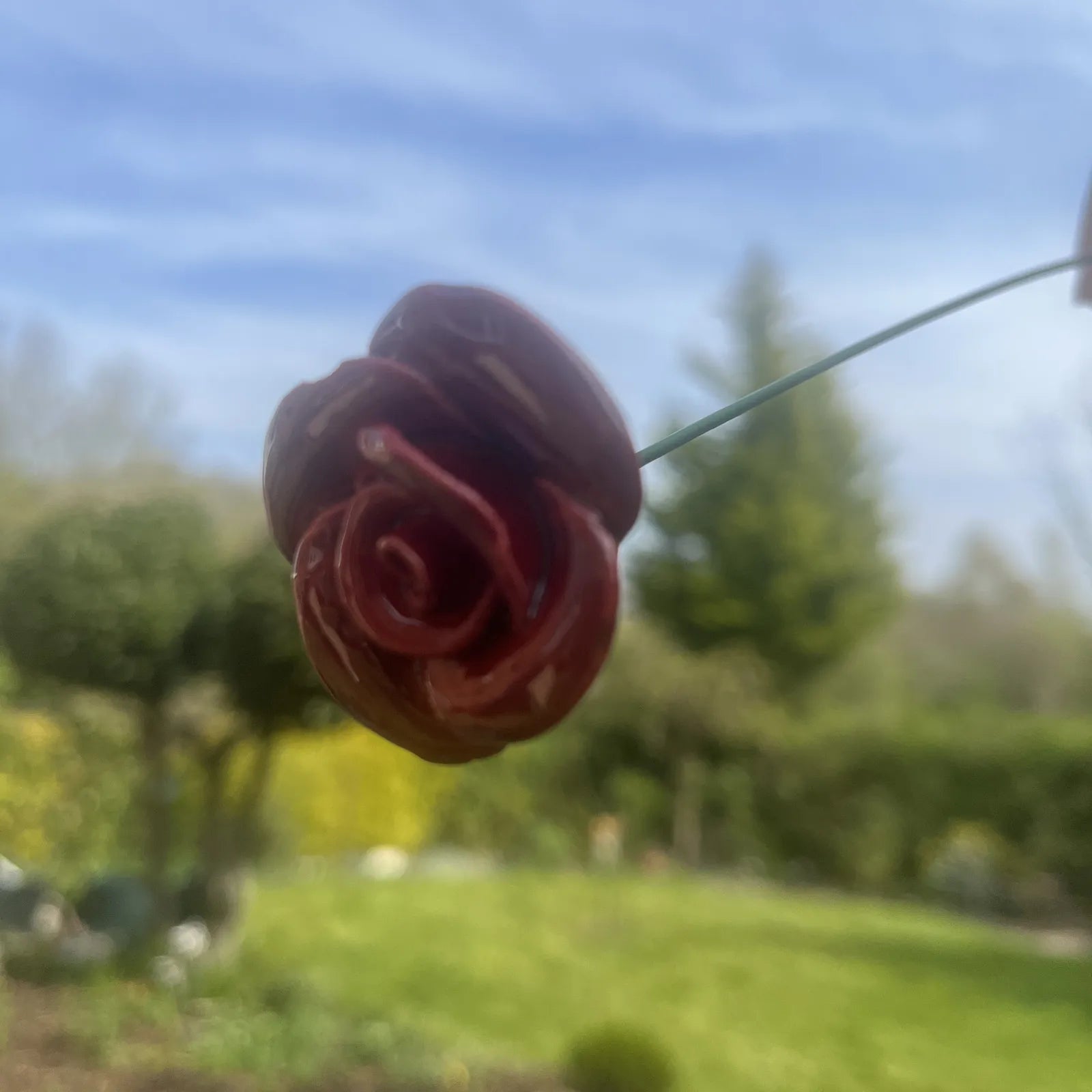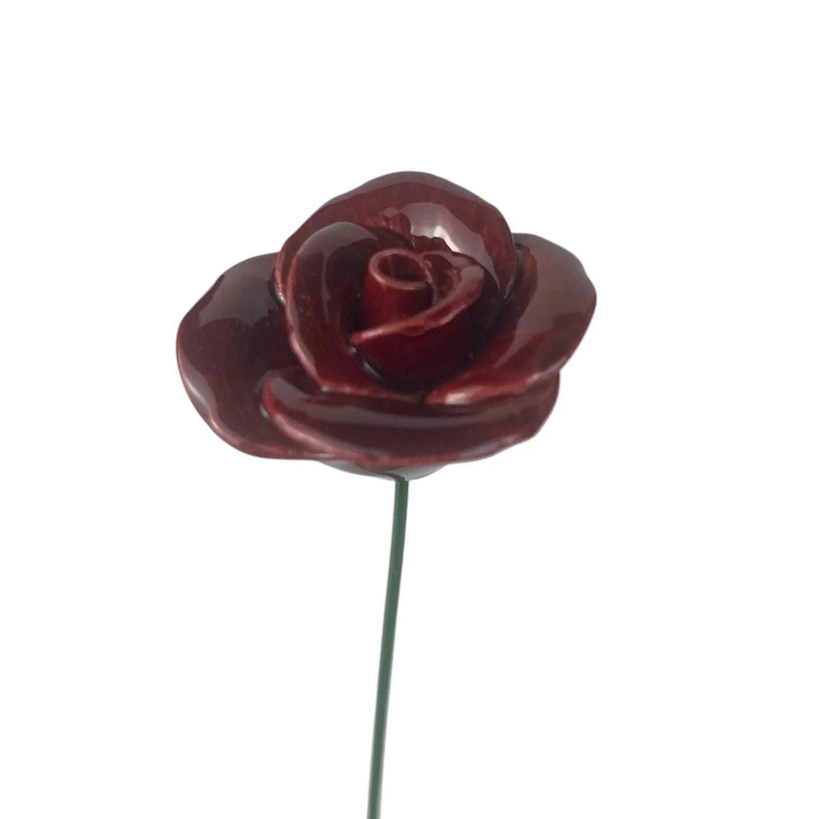 Bold and timeless, this deep red ceramic rose is a classic floral piece with a handcrafted twist. Shaped with care and finished in a high-gloss glaze, it’s enhanced by delicate crackling that gives each rose a unique, aged finish. Perfect for romantic gifts, vintage-inspired displays, or adding a dramatic touch to a mixed ceramic bouquet. Its size and colour make it a versatile favourite for both indoor and outdoor arrangements. Stem length approx. 20 cm – rose diameter approx. 3.5 cm.