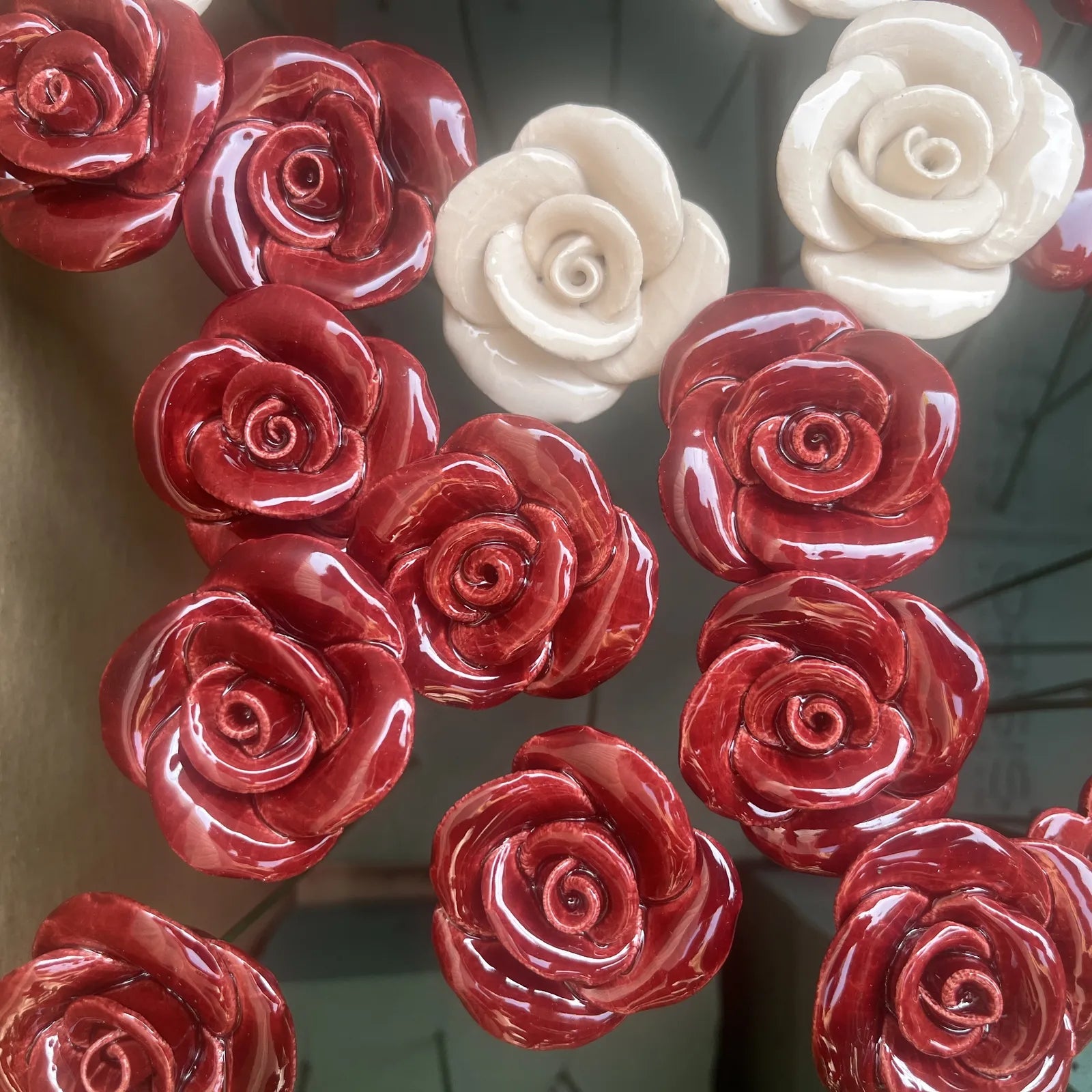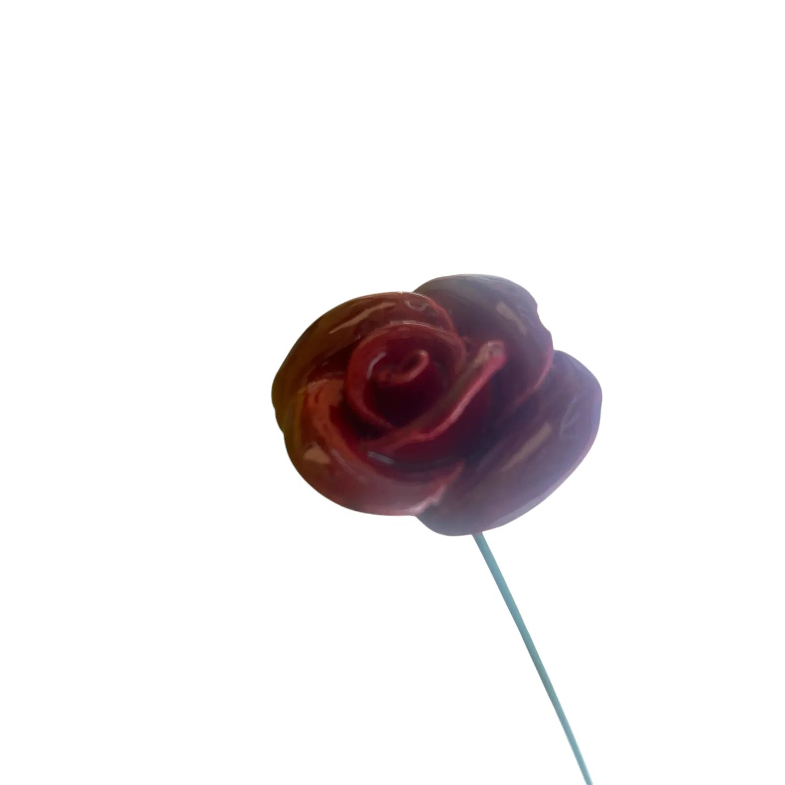 Deep Red Handmade Ceramic Rose – Glossy Floral Accent With Crackle Finish
